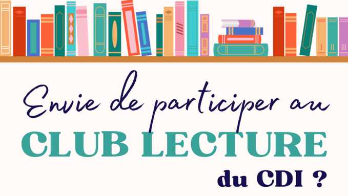 La première séance du club sera le mardi 14 octobre au CDI de 12h30 à 13h15 (les élèves inscrits pourront passer prioritaires à la cantine et le CDI leur sera réservé).